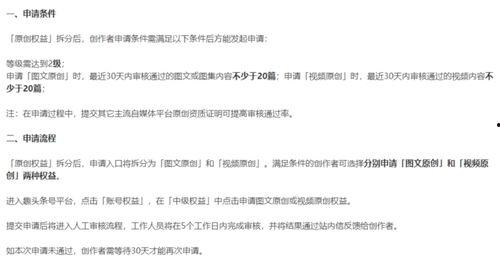 首先,得说说什么是原创权限。简单来说,就是头条号平台为了鼓励原创内容,给予那些创作质量高、内容独特的作者的一种特权。有了这个权限,我的文章就可以获得更多的推荐和曝光,这对于我来说,无疑是一个巨大的鼓舞。